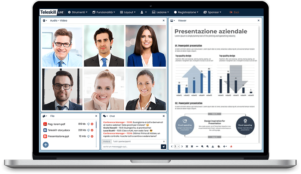 Crea e gestisci webinar aziendali e formativi con una piattaforma semplice, accessibile da qualsiasi dispositivo e progettata per l’interazione e il monitoraggio completo.