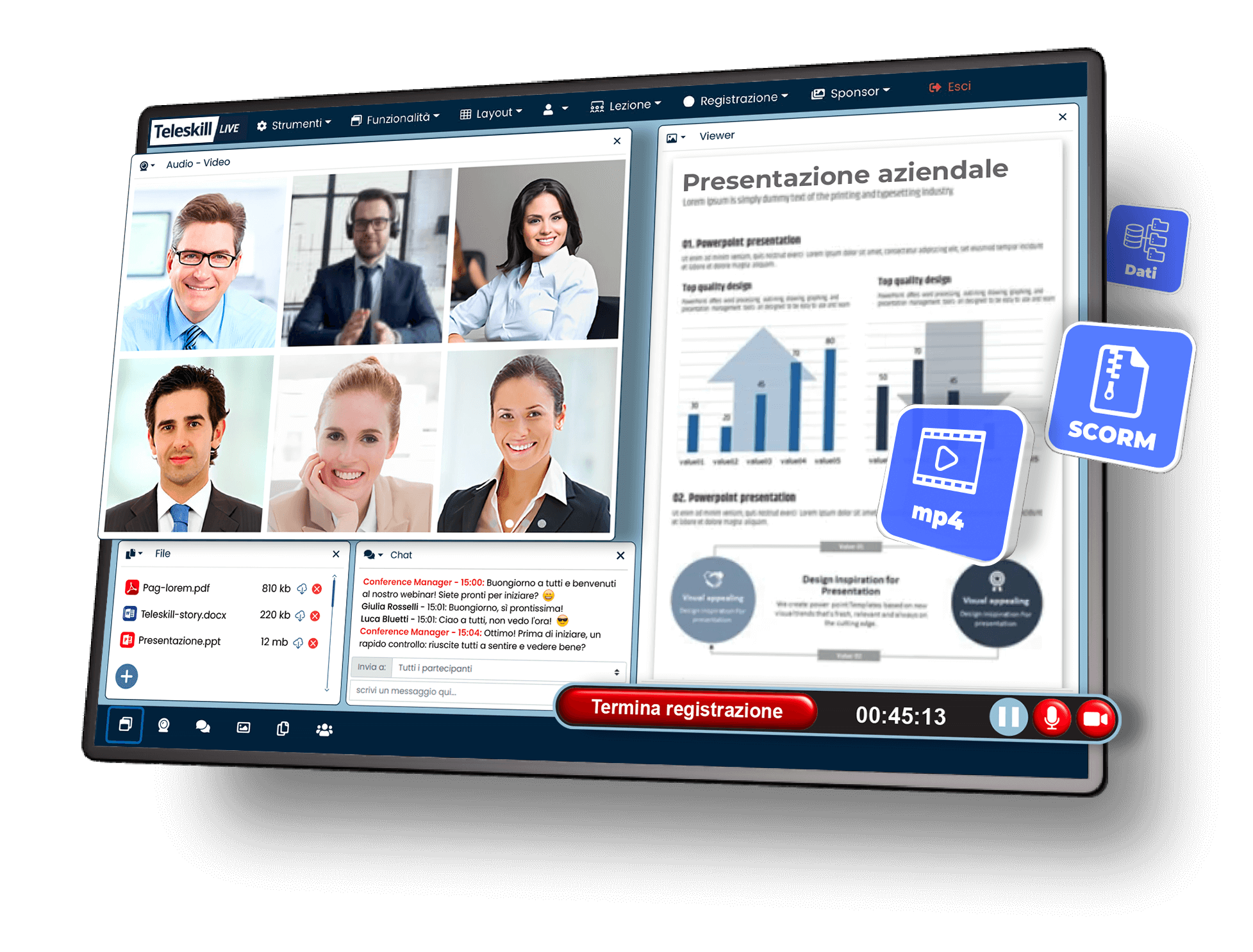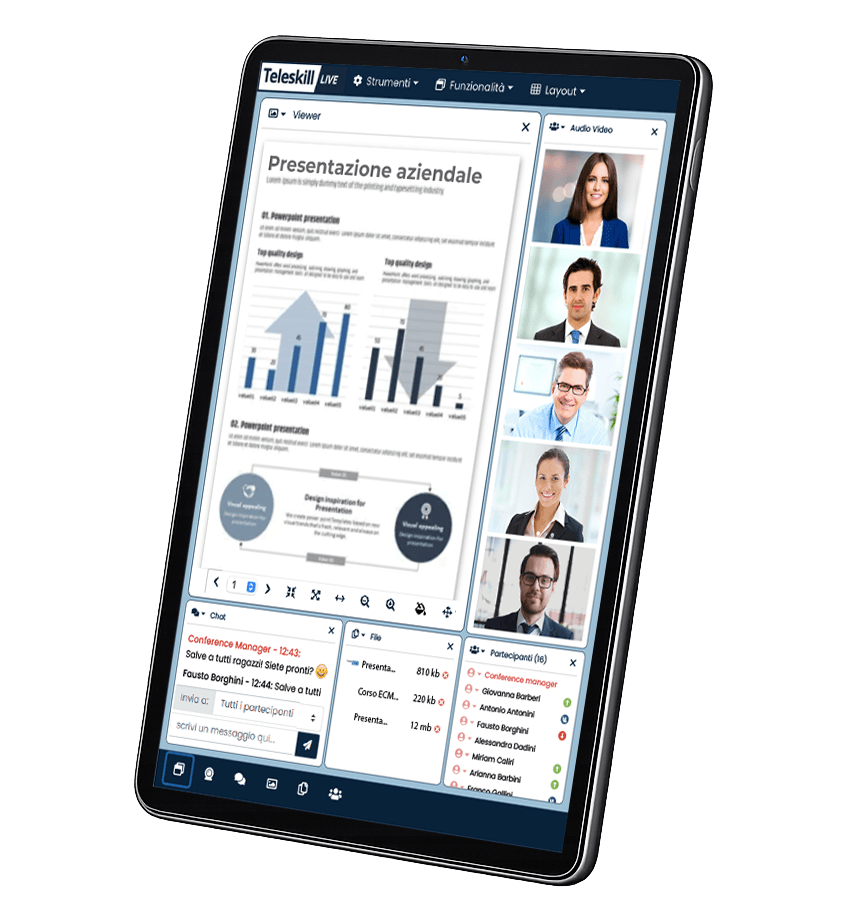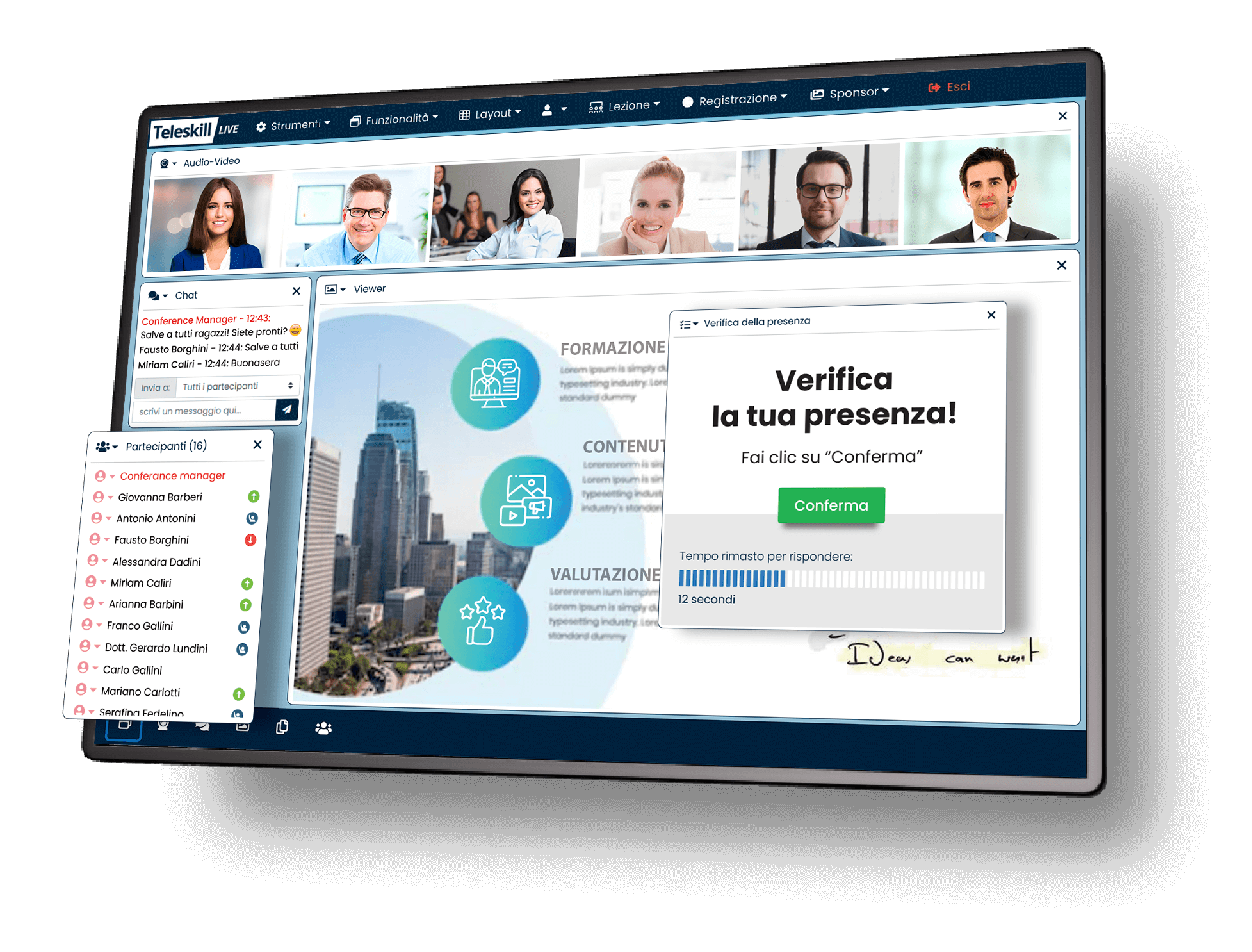 Una soluzione enterprise che unisce gestione operativa, interazione live e controllo formativo in un’unica esperienza fluida, interattiva e immediatamente scalabile.