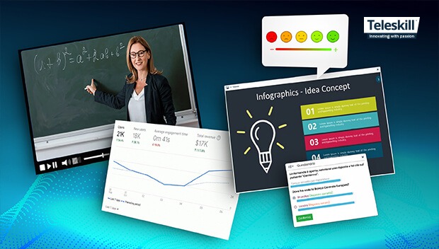 Con Teleskill live è possibile erogare durante il webinar questionari , anche automatizzati e con tempo massimo di risposta, se si vuole. I risultati dei questionari posso evidenziare lacune e generare delle domande, distribuite in modalità microlearning, a cui rispondere con successiva registrazione e possibilità di creare. una pillola collaborativa.