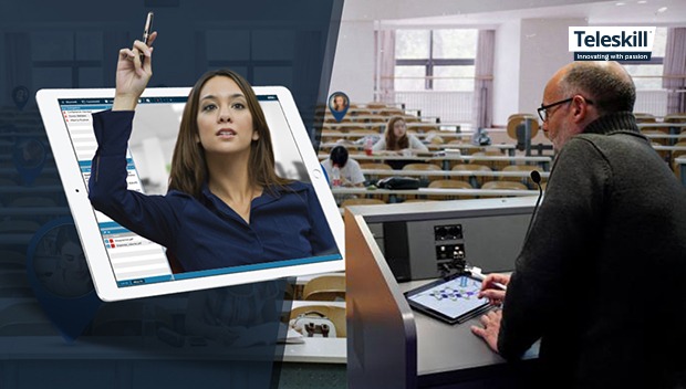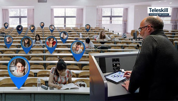 Il modo più semplice di realizzare un’aula estesa è tramite uno strumento di classe virtuale o webinar come Teleskill live webinar.