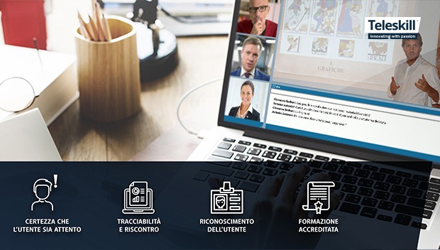 In più, Teleskill live webinar è dotato di un sistema di monitoring che consente in tempo reale, al docente, di avere il polso della classe in diretta e capire il grado di interesse e coinvolgimento su uno specifico argomento. Inoltre, un software di riconoscimento biometrico facciale, integrato al software di webinar, permette di ottenere la certezza dell’identità del discente prima e durante il webinar oppure prima e durante la somministrazione di quiz o esami. Infine, il sistema di test e questionari, il riconoscimento biometrico, la funzione monitoring si integrano per offrire una formazione certificata.