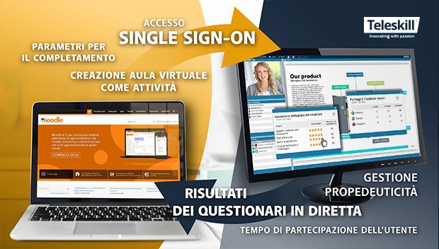 Moodle e Teleskill live per aule virtuali. Integrazione completa al 100%